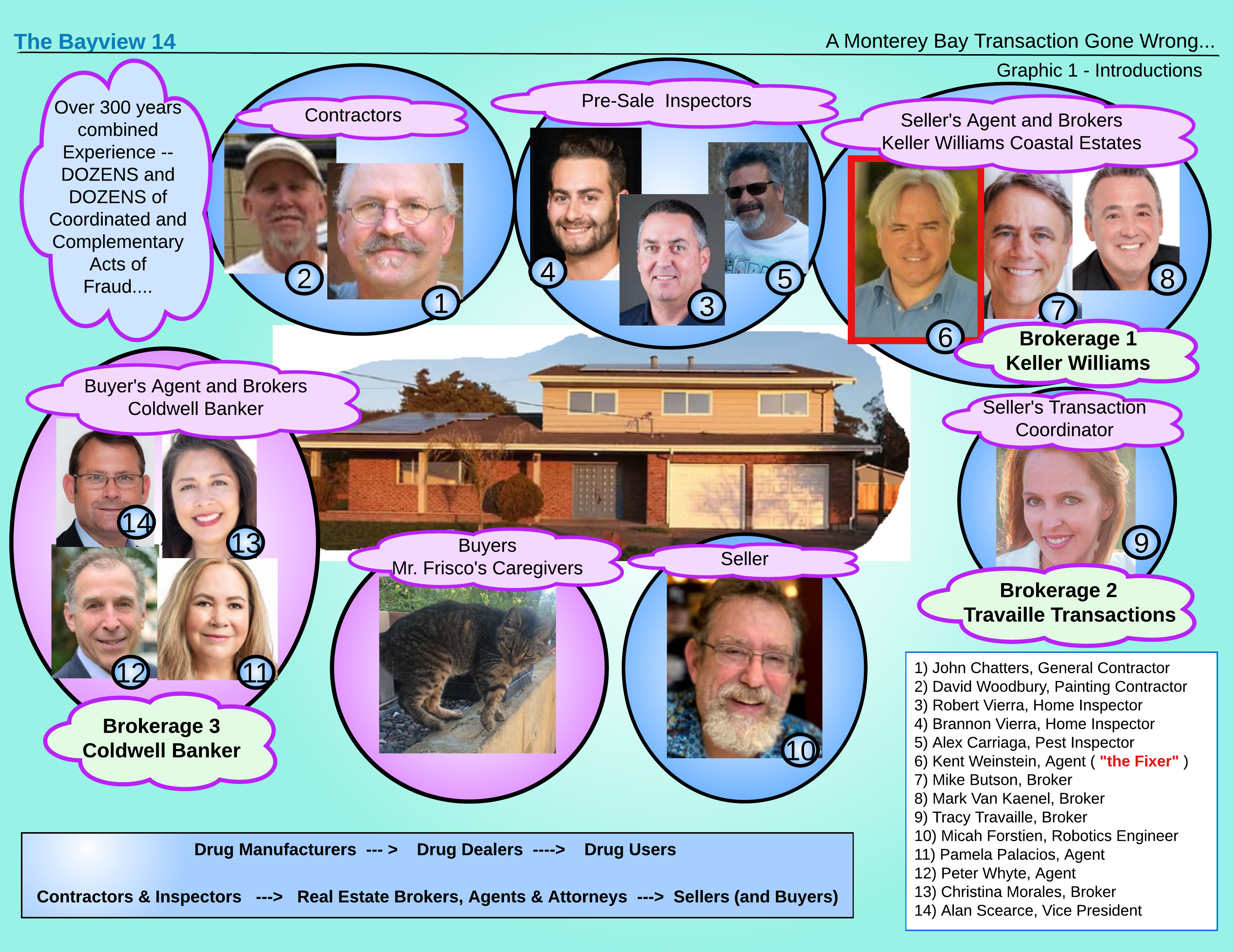 The Bayview 14 is a true story about 11 Licensed Professionals and 3 non-Licensed Professionals with over 300 years combined commercial experience who contributed directly or indirectly to a Real Estate “Fix Up and Disclosure Fraud Scheme”.